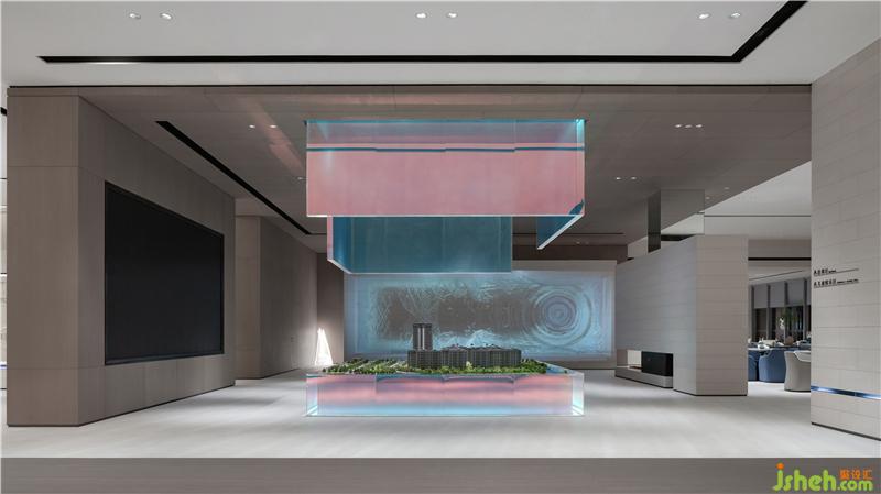 沙盘造型如一个流动变化的魔方,透光罩为幻彩亚克力材质,其随观者视线流转而变换的丰富色彩,进一步提升空灵意境,艺术质感的格调跃然而出。