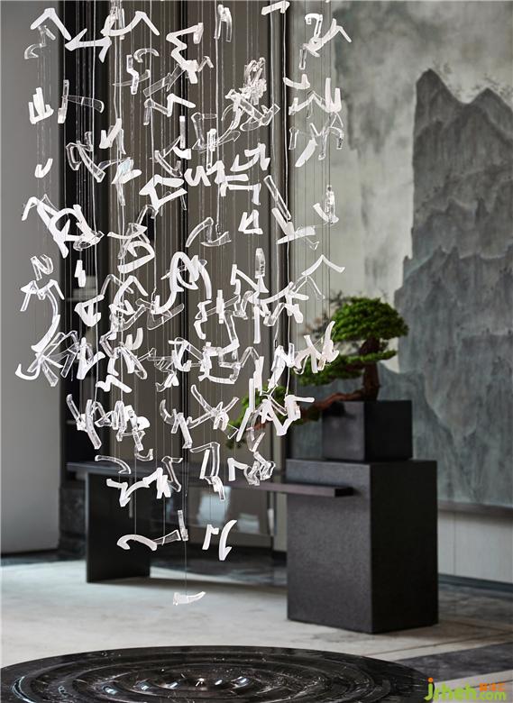 横竖点折,撇捺弯钩,将平面的书法,打磨成立体形状,悬而挂之,光线的深浅自然呈现下笔的轻重。就是这寥寥笔划,勾勒出上下五千年的文明,溅起历史的圈圈涟漪。