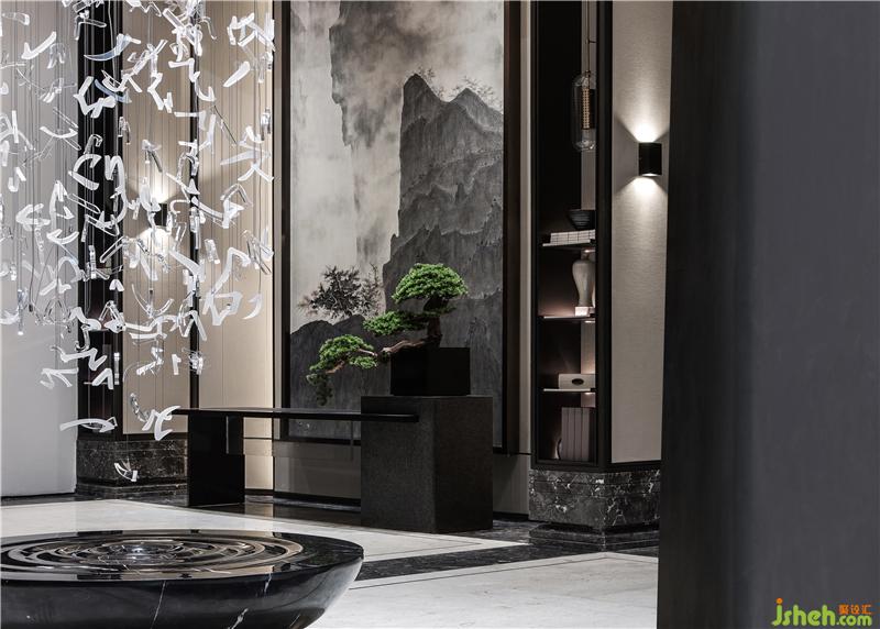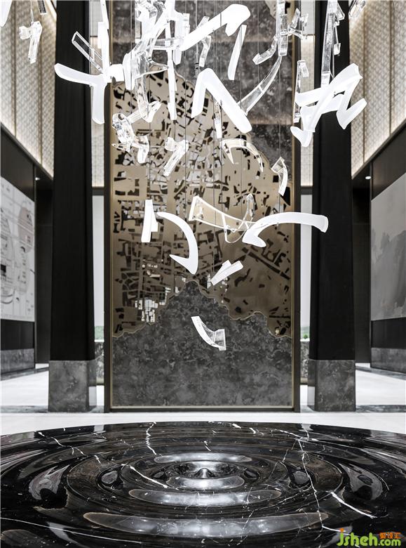 售楼处设计将自然的鬼斧神工融入这人文画作,裂纹大理石就像随意的泼墨,“或挥或扫,或淡或浓,为山为石,为云为水”。