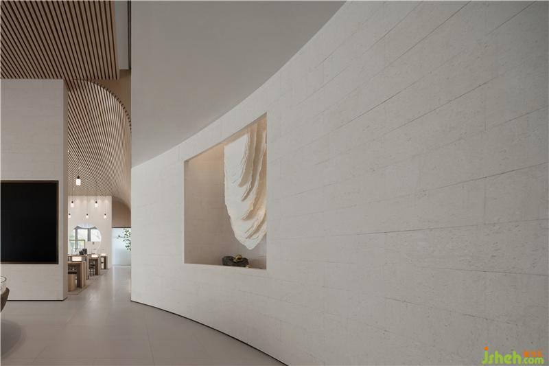 书之雅在于心,不在于行,书中自有黄金屋,书中自有颜如玉,基于此,将文人雅士所向往的闲适生活通过设计场景的转化重新植入到当代人的生活场景中。调性温和的材质,素雅简洁的色调,人与人、人与自然、人与空间的无界限交流,为空间营造了一种“轻生活”的淡雅语调。