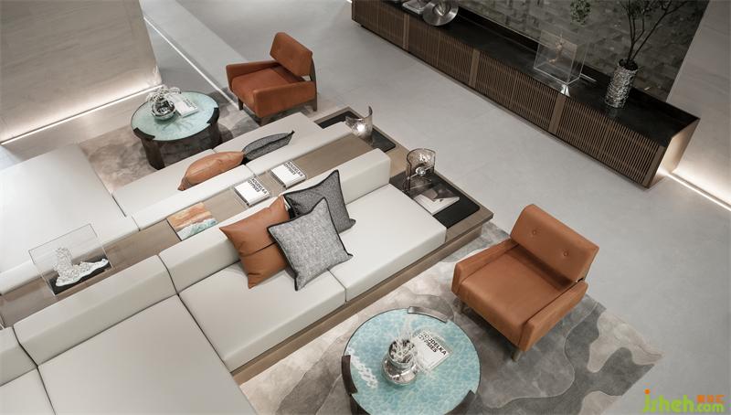 移步向内,随着格栅动线的牵引,导入几何线条,石材体块的分割,温暖扑朔的光影,营造潜移默化的序列感与纵深感。搭配线条感十足的灯饰,空间仿佛拥有着生命一般温润而自然,以简洁、干净回应现代人的理性与克制。