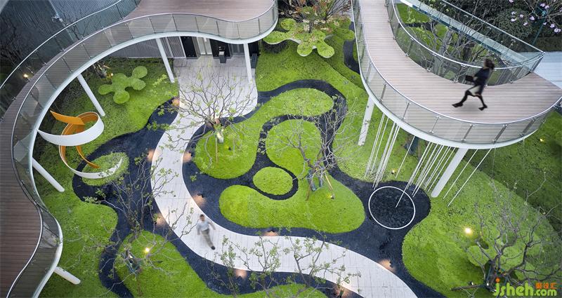 景观设计将软性的绿色力量,将生活与空间构建成一个彼此有机交织且更具有生命活力的自然生态,消融场地与自然的边界,打造一个近在咫尺,可日常享受诗意绿色的生活环境。