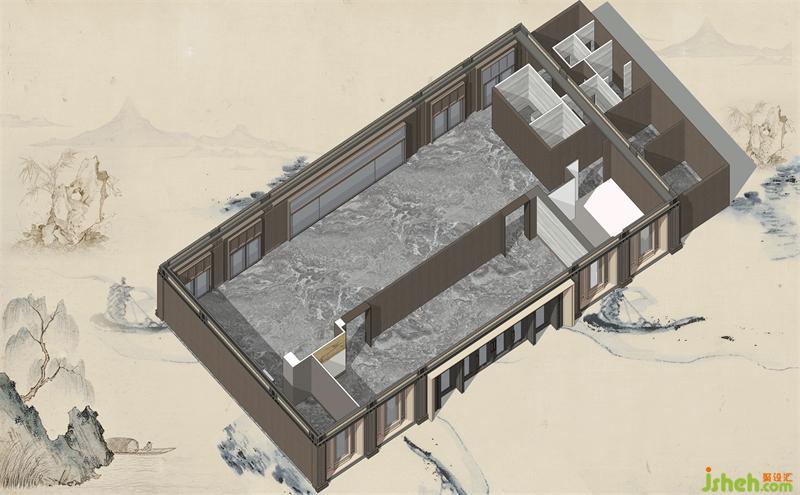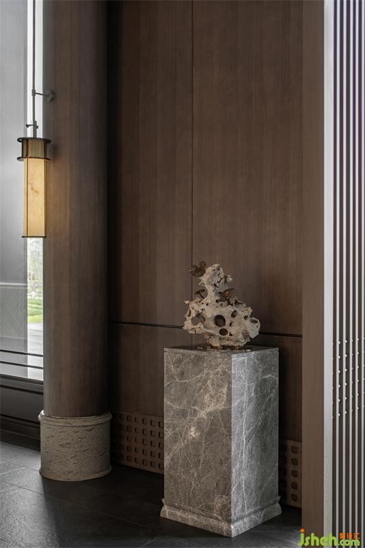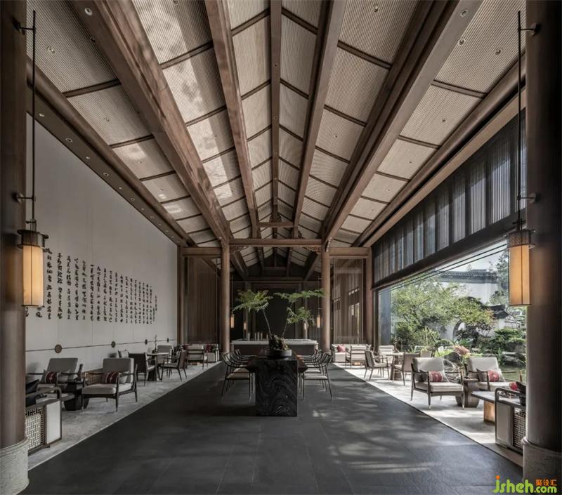 The design of the transept introduces scenery into the room through the corridor, mountain stacking, water management and tree planting, creating the free interest of the natural mountains and wilderness, and the harmonious coexistence between people and the environment.