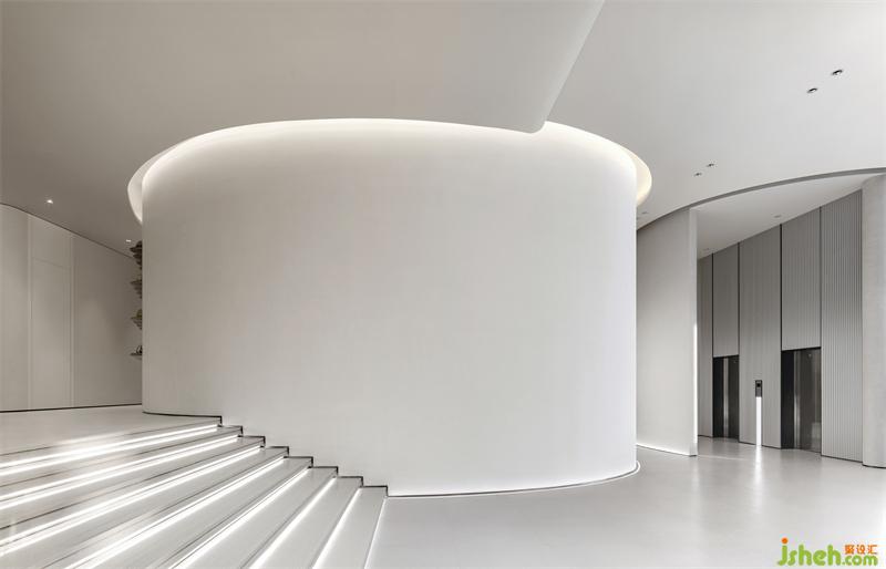 树洞象征着释放、沟通及链接,是众多童话故事或奇妙旅程的重要路引。以“树洞”为空间的象征符号,在有限的空间内巧设门洞作为间隔,如迷宫般神秘吸引,令人衍生无限想象,不禁探索其中。穿梭行走在“绿光森林”里,人慢慢变小,本来在石头上的一个个造型各异的弧形门洞变成了宫殿廊柱,墙上的金属管状灯成了叠加的光源,为人们照亮去往下一个空间的路。