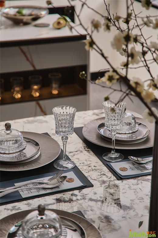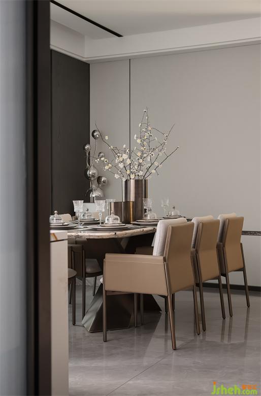 餐厅在烟火气息里感受内心的宁静,有生命力的空间,总是在不断生长的过程中呈现,石材、金属与跳跃的玻璃构成食享空间丰富的层次细节,线条勾勒生活的艺术雅奢,南京样板房设计重构当代日常栖居的诗意细节。