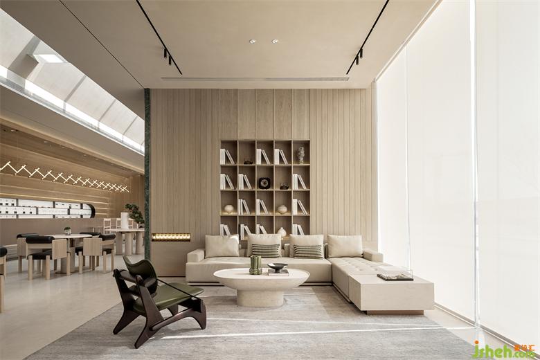 休闲区与洽谈区是商谈区域中的另一条情感脉络,南京深业南湾上府营销中心设计模糊了区域的界限,沉静的光束,折射、蔓延......