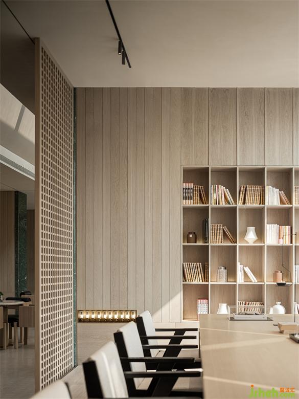 “隐”作为空间展现方式,木栅栏完美实现了中轴对称的设计初衷。立柱正面浅色木饰面与横竖交错的方格交相辉映,南京深业南湾上府营销中心设计提供具有品质和细节感的舒适。