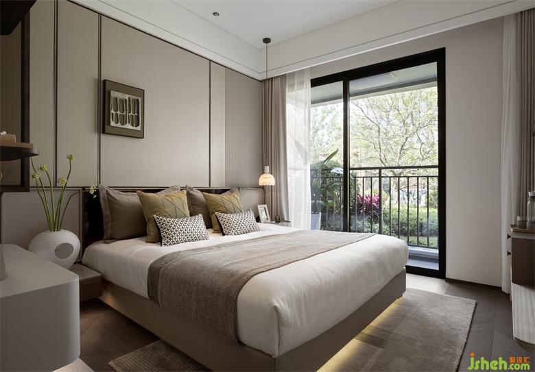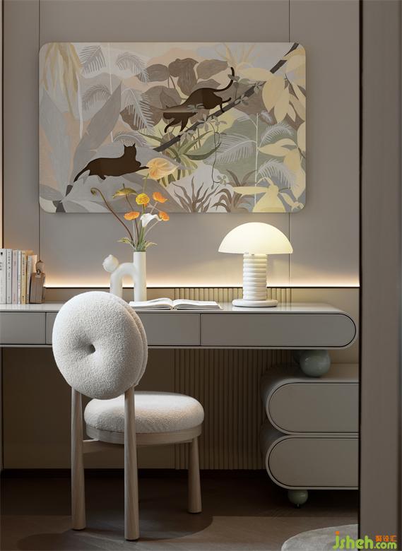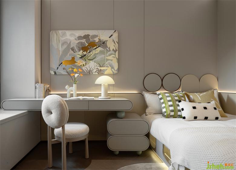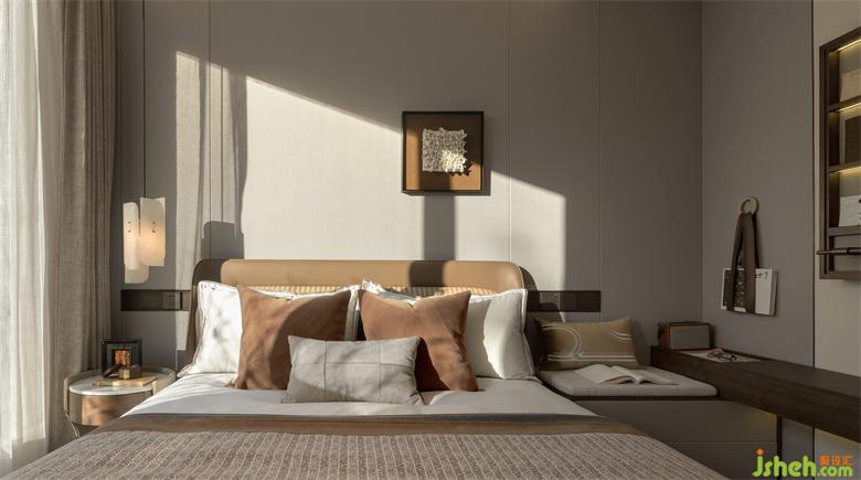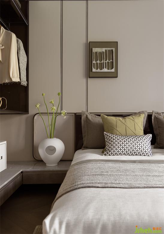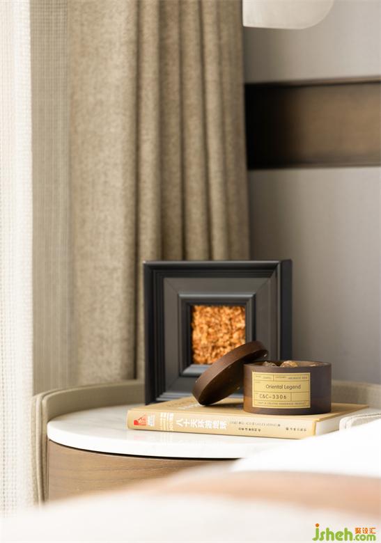 软装上选择了木质家具,床上的驼色皮革靠背及随手放置读物、香薰的小物件,厦门湖畔润璟样板房设计整体搭配像奶油一样融进浓郁的焦糖奶茶,毫无违和感。
