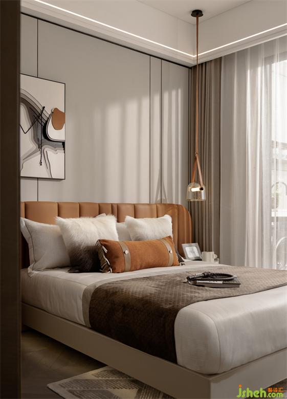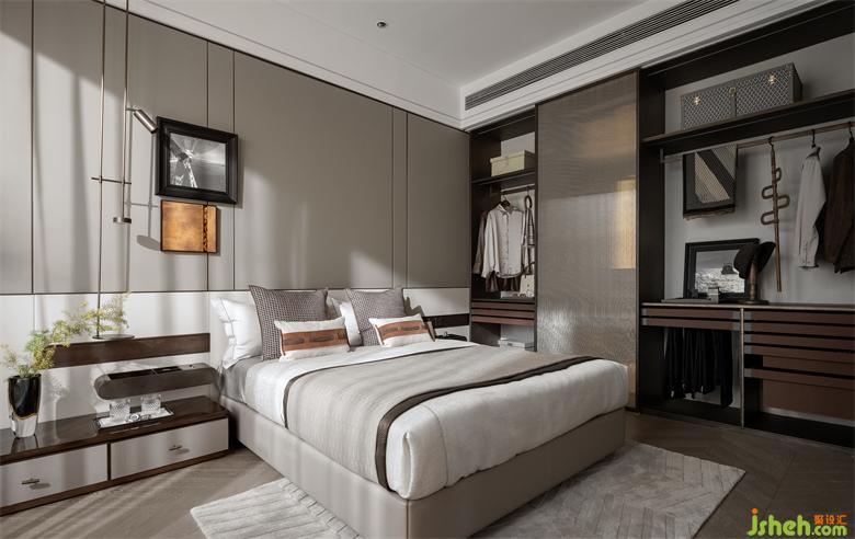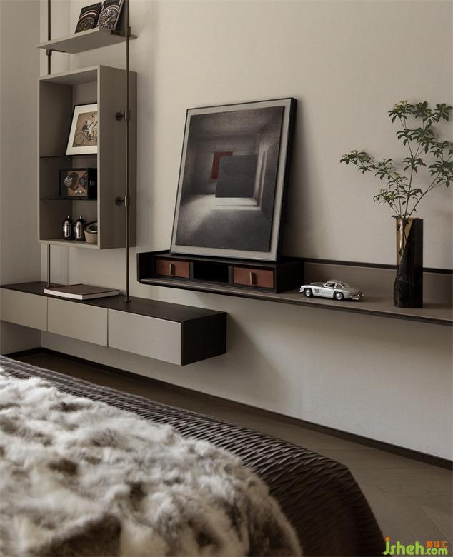 当艺术的精神,透过空间的点点滴滴显现出来,空间便多了细节,多了深思。挑高的衣橱,异形的茶几组合,似流水般串联起空间的艺术氛围。