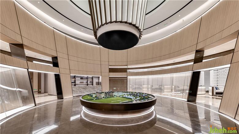 该项目为住宅区售楼处,设计师希望引用中国东方文化思想以及外方内圆的传统建筑格局来完成这个作品,所以整体外墙建筑是方的,朝向四周无限延展;室内空间设计为圆的组合造型,聚拢含蓄。设计师通过现代的设计手法将古人博大精深的文化内涵阐述出来。