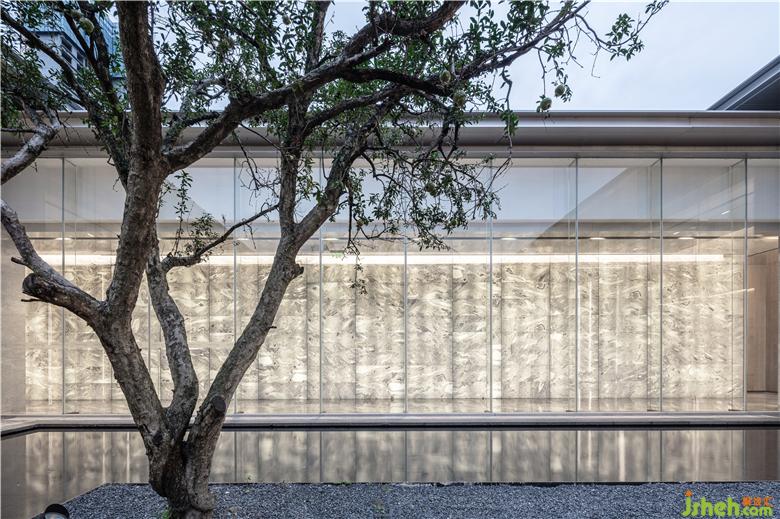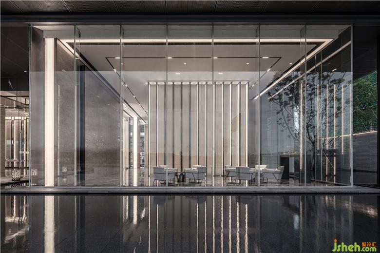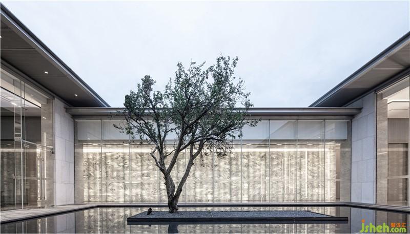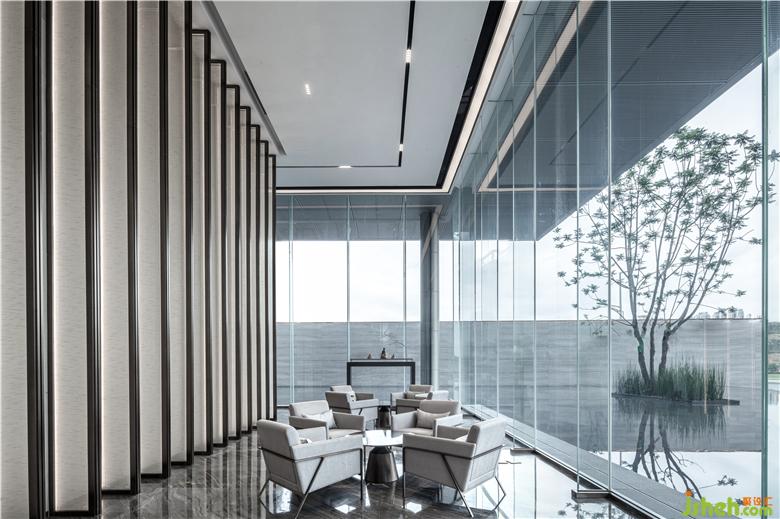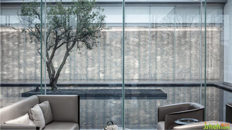 引一池水,置一株树。洽谈区临水而设,落地玻璃形成通透的视觉景观,镜面澄澈,树影婆娑,一池一景;环境的细节营造令人沉浸其中,欣赏体会。