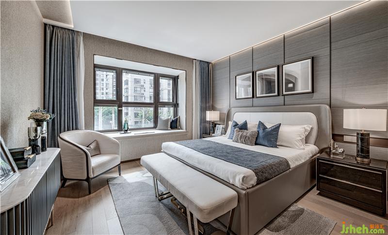 卧室作为日常休憩之所,以简单、细腻、素雅为基调,赋予每间卧室不同的个性。木色地板与灰色墙面的搭配,传递出自然而温润的气质,窗外树影婆娑,室内影影绰绰,丰富了视觉感受。