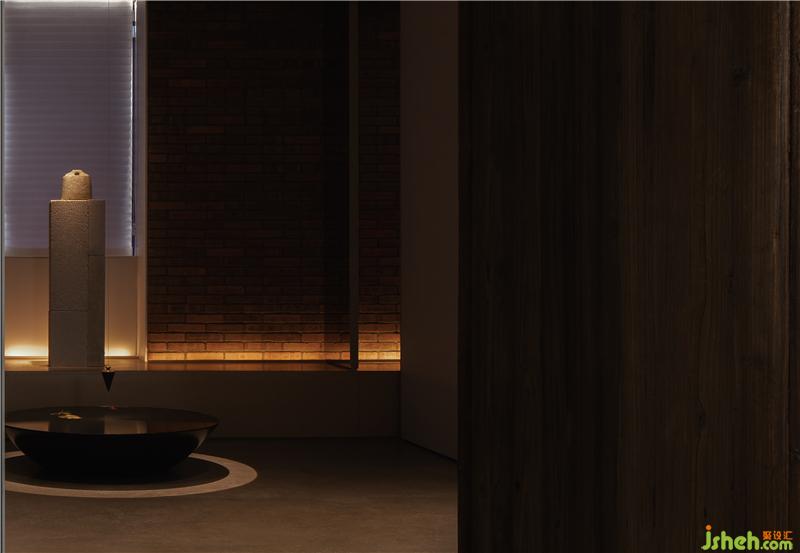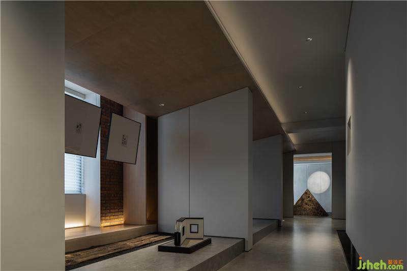 展厅背景是一面新砌砖墙,与古法土砖墙遥相呼应。新技术与老形态共存的意义在于传达主理人“尊古而不泥古,展厅装修设计创新而不忘古”的态度,将传统技艺中一些似乎被忽视、遗忘的细节重新捡起、淬炼,使其焕发新生。此外,工艺涤故更新,我们借施工过程中最基础的一环体现主理人们的匠人情怀,这种不炫技的底气不仅来自夯实的技艺基础,也源自他们内心的文化自信。
