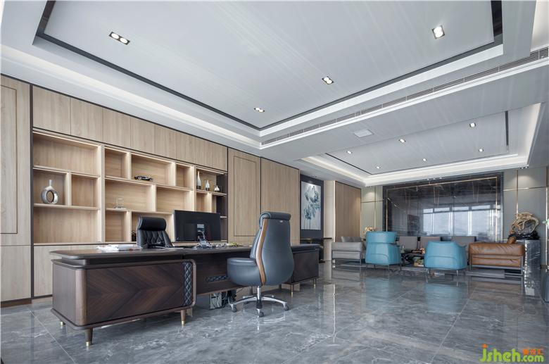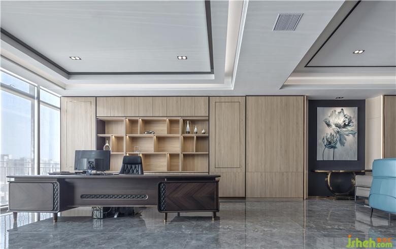 总经理室整排的落地窗外,映入眼帘的是一览无余的景象,给人带来了一种愉悦的体验感。