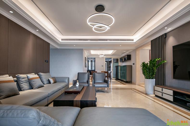 恒裕滨城在倡导当代品质生活与人文精神、自然生态相结合的精神理念上,为保证每个户型都拥有极致景观视野,空间结构采用了L型布局来实现景观无遮挡,南北通透,视野最大化,让居住者都具有绝佳的观赏角度,园景,海景,从容尽享,自成天地。在本户型的设计理念中,不仅要在原建筑的基础上,保证天然景观与室内的融合,也要结合业主梦想中关于家的温暖与优雅。因此,设计师在确定现代雅奢这样的风格后,根据项目户型结构和原本自有的精装修模式,旨在用文化碰撞时尚,用细节体现儒雅尊贵,让艺术氛围交织生活空间,融合人文美、自然妙趣、现代生活的方式,演绎不焦不躁、不凡不靡、安然若素的简约休闲宜居空间。