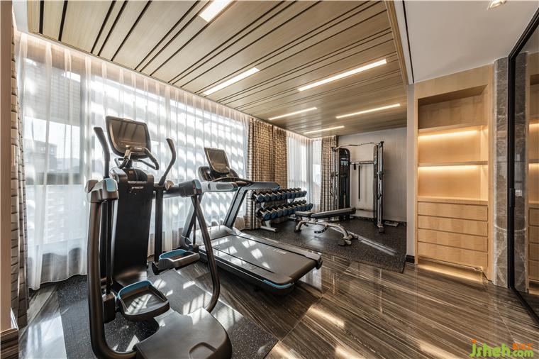 顶层复式设计三楼休闲功能厅除了起居室、茶室,桑拿房、专业健身房,专业级的私人影院满足家庭成员的各个需求,同时丰富生活的日常,引导健康、温暖、格调的生活场景。