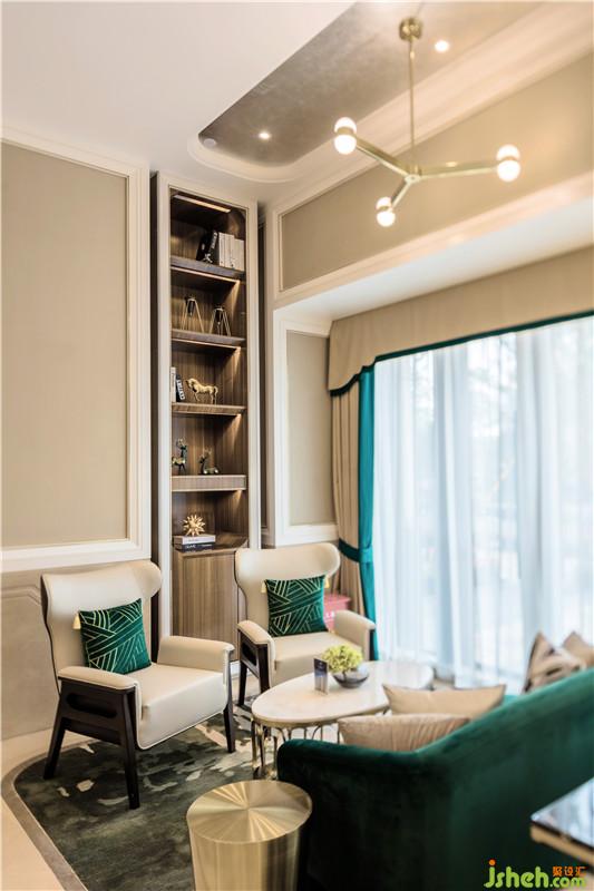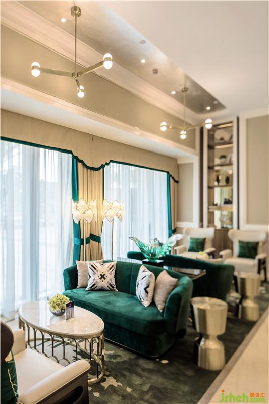 在固有的硬装色系色中调以米白、深咖、浅咖的暖色调,使整体空间有一种舒适的感觉,再配合软饰的翡翠绿,空间整体上突现一种灵动!丰富的氛围,契合翡翠项目的主色调,并贯穿始终,让空间有一种非凡的气质。