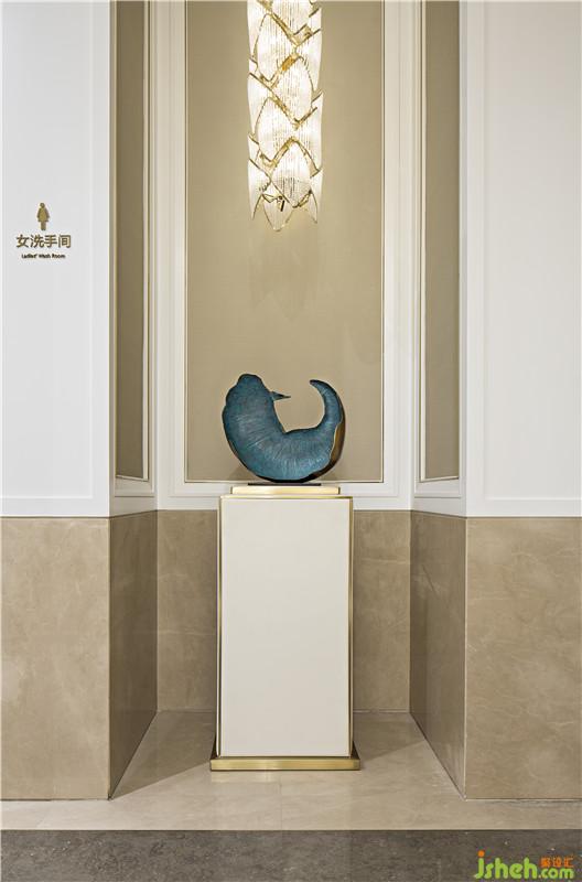 家具、面料的选择在工艺和环保上都及其讲究,有繁有简,造型优美,以暖色调为主由浅至深层次丰富;不锈钢搭配玻璃和石材,衬托出华贵的气质;布艺选料注重手感粗磨,并选以少许ART DECO放射状元素图案进行搭配,契合硬装主题,共同构造独特的物象之美。