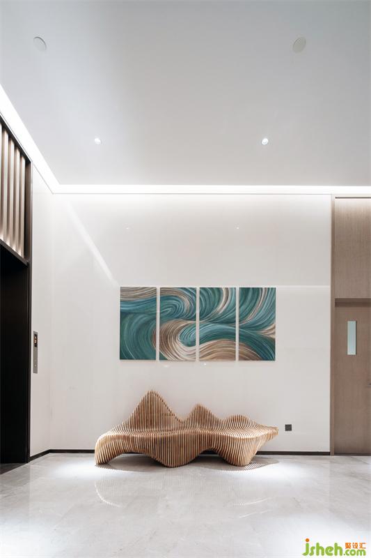 看楼通道大堂里涌动的艺术线条,仿佛一场精彩而丰盛的人生缩影,在这里直面内心,从这里探寻家的方向——家才是最真切的归属,有了家,才是最美好的丰盛人生。