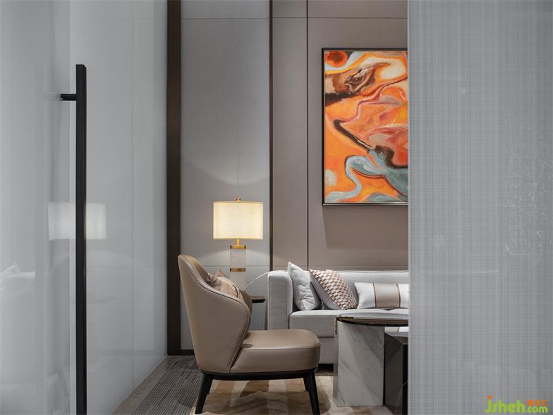 VIP签约室硬装彰显着清雅别致的商务感,在软装的艺术氛围萦绕下,又透露出色彩的层次与艺术品味。