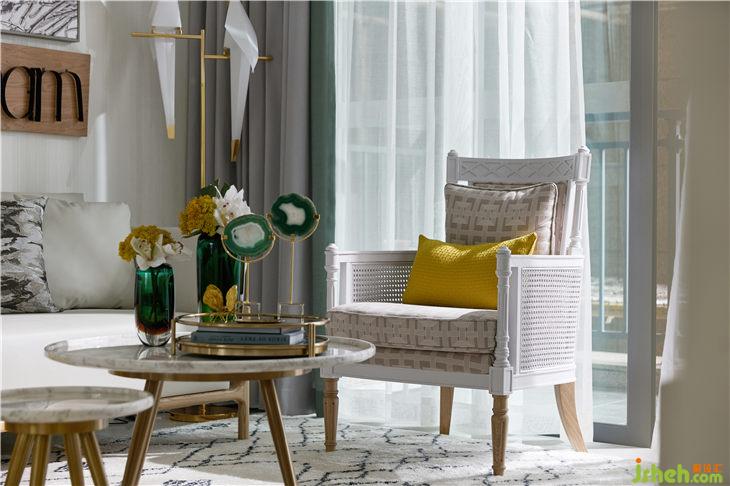项目是丰泰集团虎门风华豪苑精装交楼样板房的软装设计。随着近几年的发展及国家环保要求,之前豪装样板房慢慢的退出了设计的舞台,随之而来的是交楼标准的装修样板房设计。此项目就是一个典型的交楼标准设计的案例,原开发室内设计是标准化的交楼装修,内含地面铺贴与天花简单灯槽、墙面白色ICI油漆、橱柜、卫生间等。我们接手这个这个案子之后重新给项目确定软装主题设计---新中式混搭。主基调在遵循原有的白色基调,以浅木色作为家具的主要色调,辅以明快的绿色、柠檬黄色来活跃空间的气氛,使整个项目呈现出清晰大自然的感觉,花草的芳香弥漫四方······