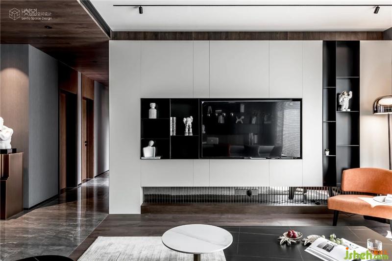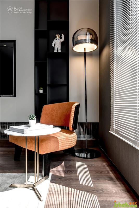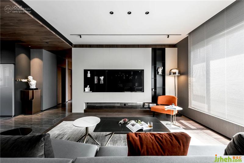 黑、白、灰、橙四种不同色调,冷暖错落,层次分明,让空间色彩更加立体丰富。