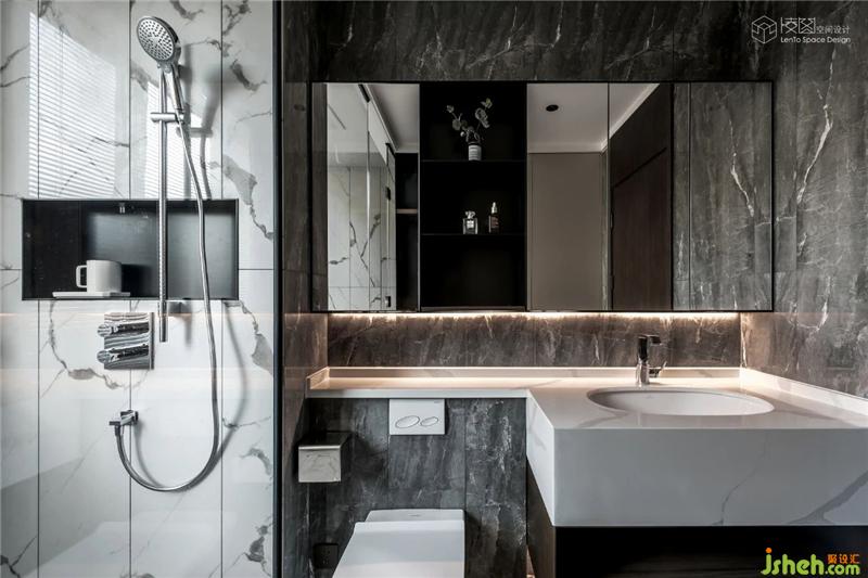 整体空间简洁有序,线条延伸、灯光氛围,以及材质形态都经过了精心拿捏,
