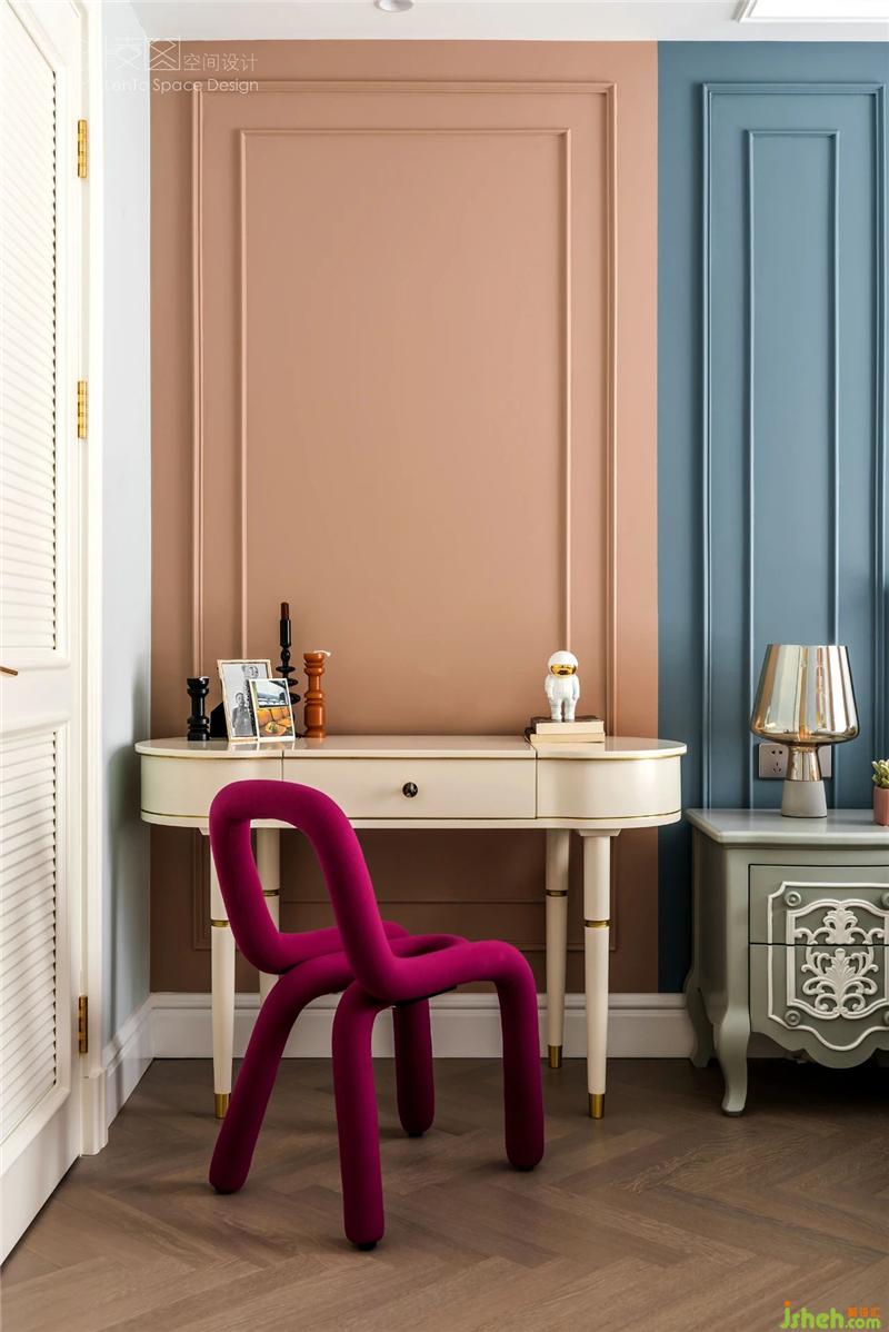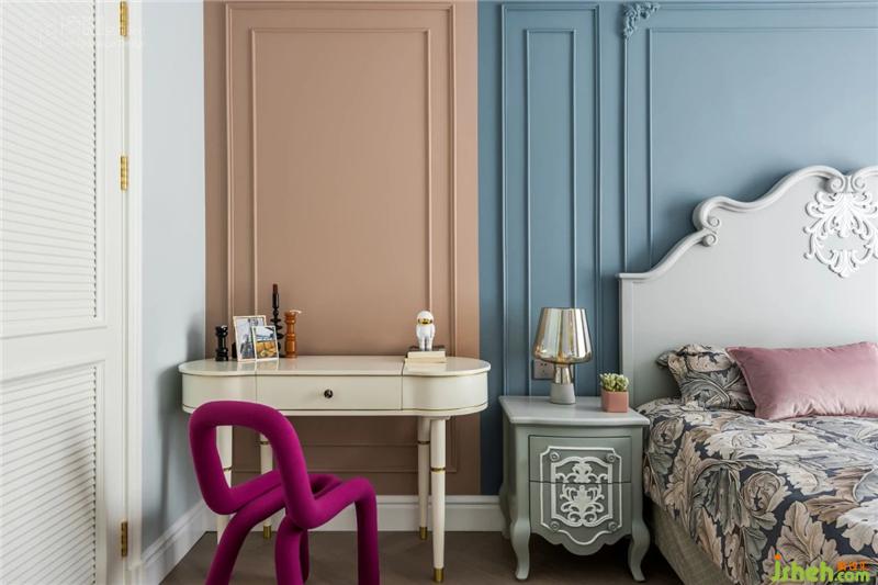 与半墙叶脉花纹墙纸搭配起来生动又活泼。