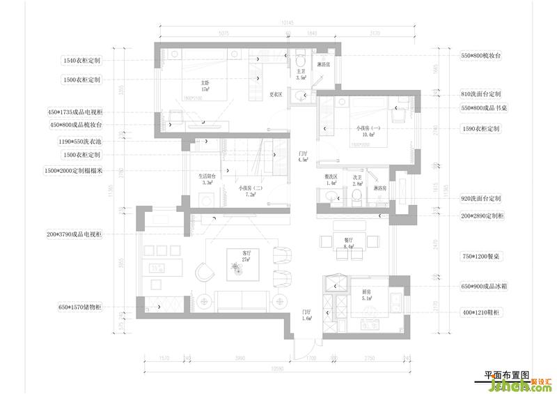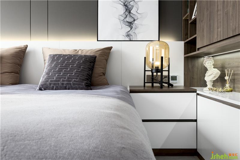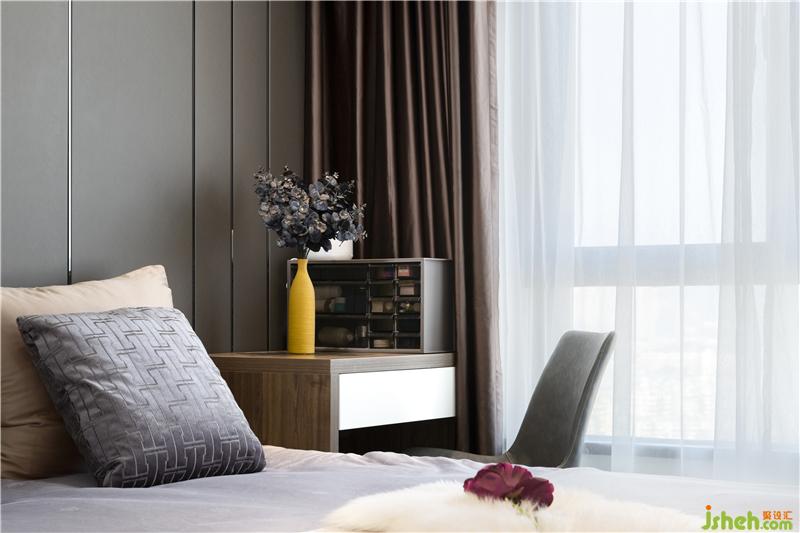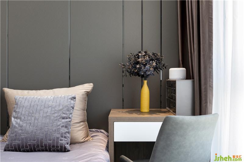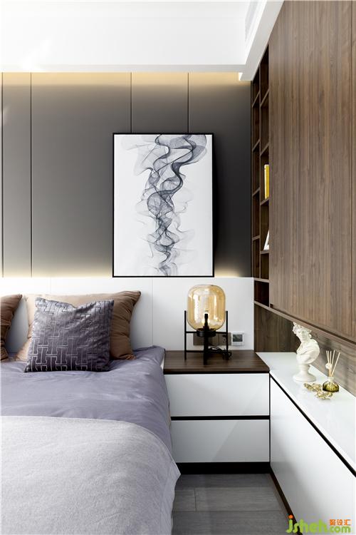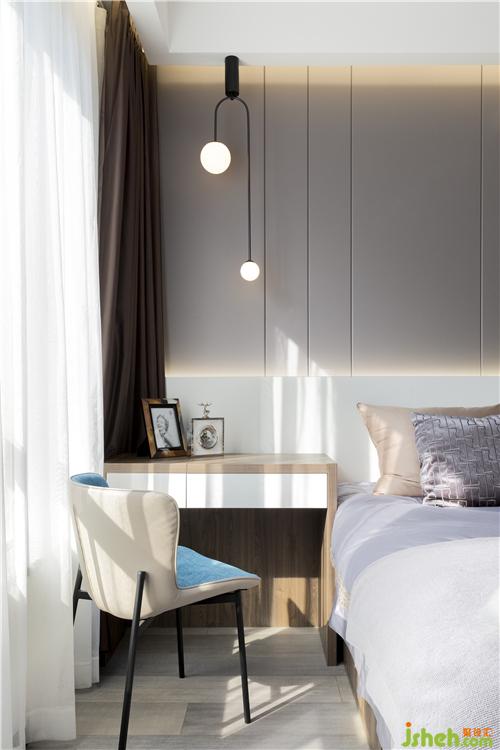 PS:本案整木整体定制无靠背带储藏功能床铺、撞色梳妆台、床头柜及书桌、整体隐形拉手、外盖柜门及抽屉,有效提升整体感。装修公司