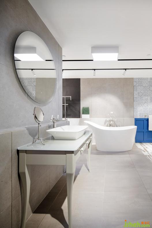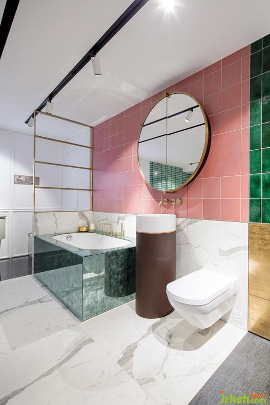 Lim + Lu林子设计想要创建现场式的购买目录体验,即消费者视野范围内的所有产品都可购买。为了实现这一构想,Lim + Lu林子设计对Colourliving的建筑材料、饰面、卫浴洁具、配件、配饰及照明在内的所有库存进行了梳理。最终,使Colourliving所提供的产品得到全面地展示,所有所见都可购买:从浴室的固定装置,到香味扩散器,再到墙上的瓷砖,甚至挂钩和挂钩上的浴袍。从新古典主义的蓝色墙面背景,到带天窗的全混凝土区域,每个场景都运用了不同的材料和色彩方案。活泼的粉色、绿色和金色点缀了整个空间。