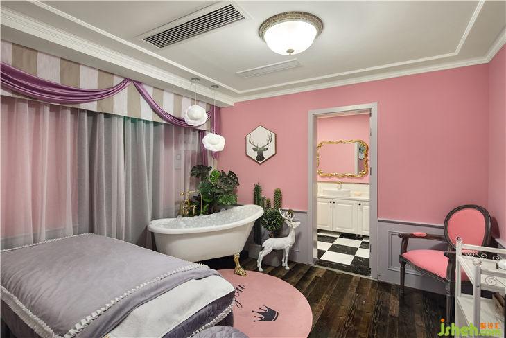 很多空间都在墙面上手绘有绿植,大厅顶上的粉红火烈鸟更是生动,其设计理念基本遵从着以人为本,尊重自然的传统思想,给人一种天生亲切,易亲近的感觉,创造出如沐春风般的感官效果。设计的重点在于使用的基本都是天然风味的装饰和大方不做作的搭配 ,性感小香风,融入了曲线的设计表现内在的气质,让优雅极致。