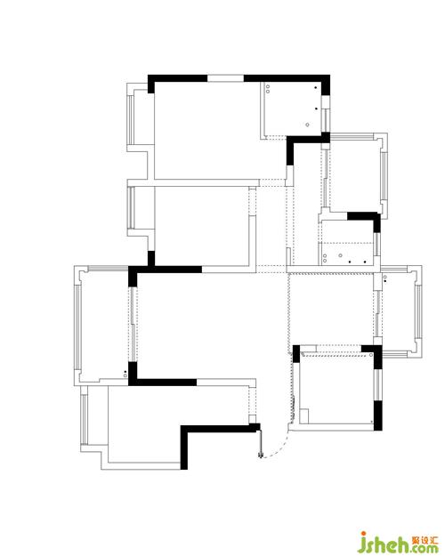 4.拆除西北角的阳台,取消次卫和阳台门前的走道,整合零碎不必要的空间,改成衣帽间,扩大次卫面积。封掉南次卧的门,改在电视背景墙侧面,在南次卧和衣帽间的走道上安装主卧房门,原本零散的空间就形成了大套间。动线相较之前更加的合理;