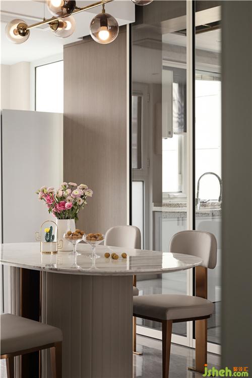 采用外挂移门,增加餐厅和厨房之间的通透,释放空间;