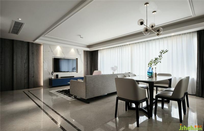 明朗流畅的线条分区创造了一个平和、中立、灵动、自然的空间氛围,让情感在其间自由生发,室内装修设计充满了工艺的舒缓优雅和现代主义的简洁。