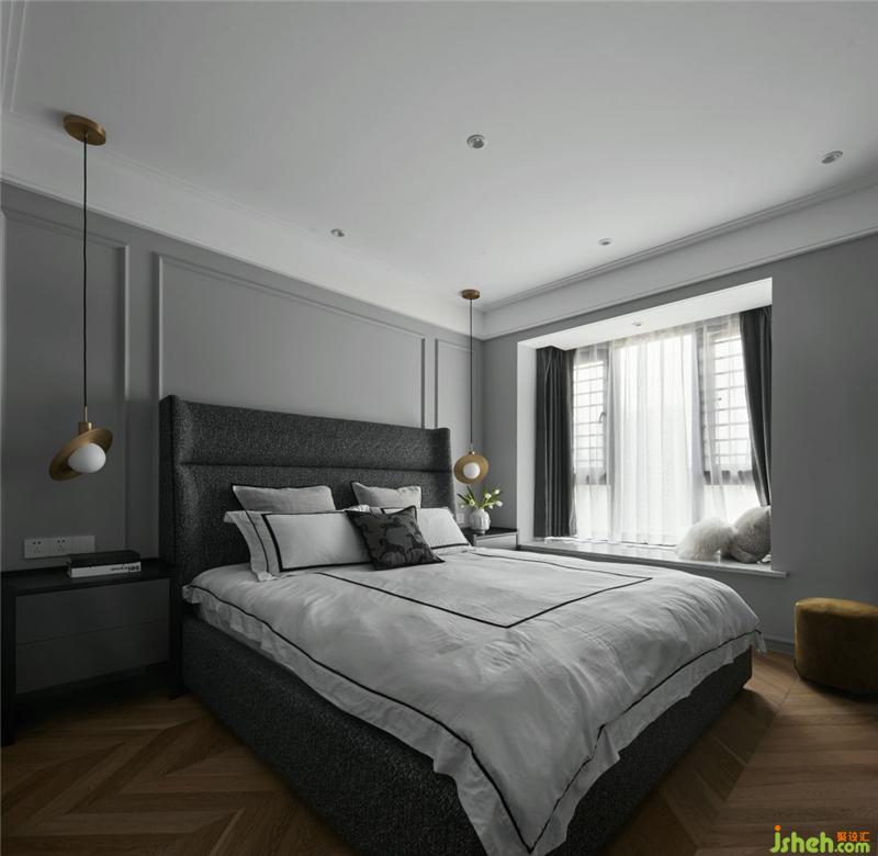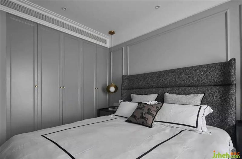 卧室的调性与整体空间,装修公司保持了高度的一致性。浅灰色调让整个空间显得沉稳宁静,彰显出高贵与舒适气息。