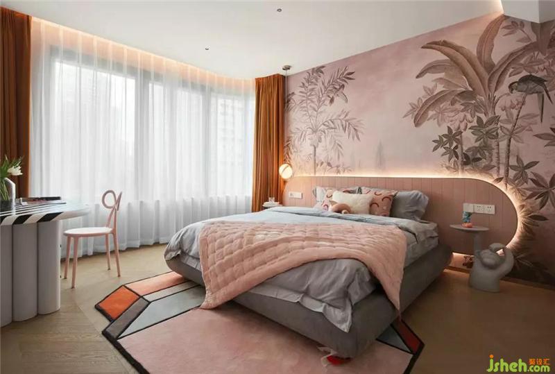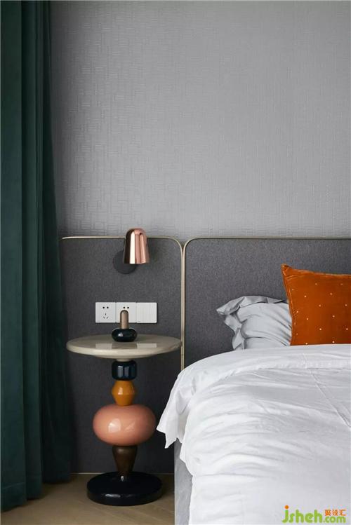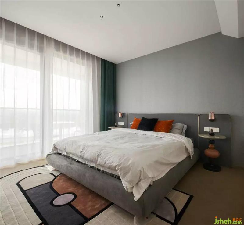 大女儿房作为一个少女时期的房间,摒弃了粉丝系的布置,装修设计大面采用高级灰的同色系搭配,雅致的色彩给人舒心放松的感觉,地毯的碎色块拼接呼应墙壁颜色的同时,起到活跃空间氛围的作用。