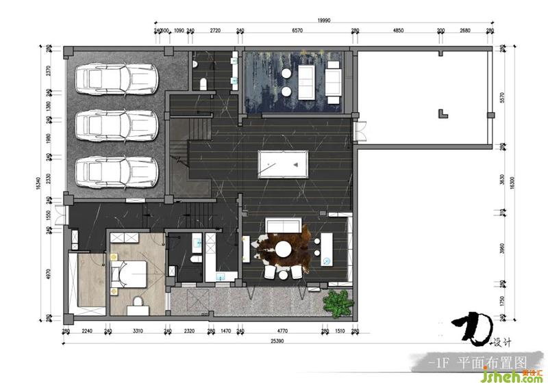 会客厅呈开放式设计,简约线条勾勒出场域的大气之感,电视墙灯光的层叠变化,别墅装饰让大理石的质感在低调中透出精致与奢华,侧面透过玻璃门视觉延伸到庭院,光影的渲染又给空间注入了力量和生命灵性。