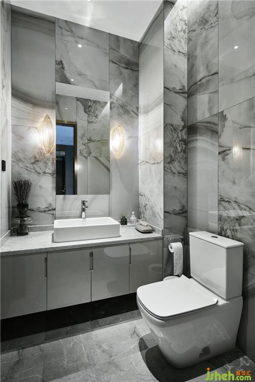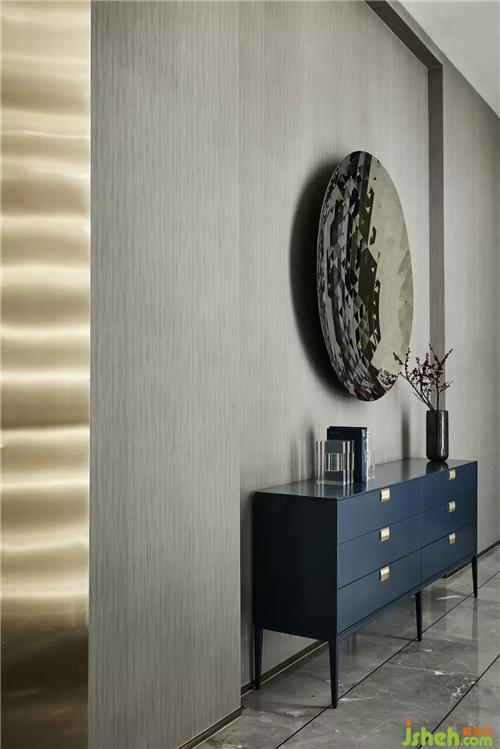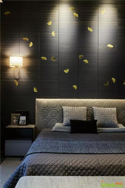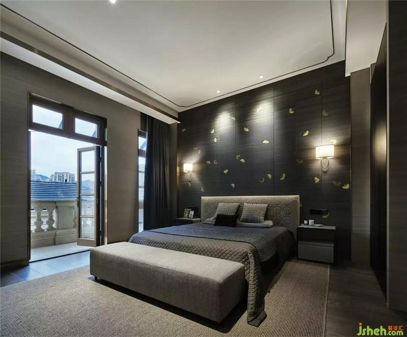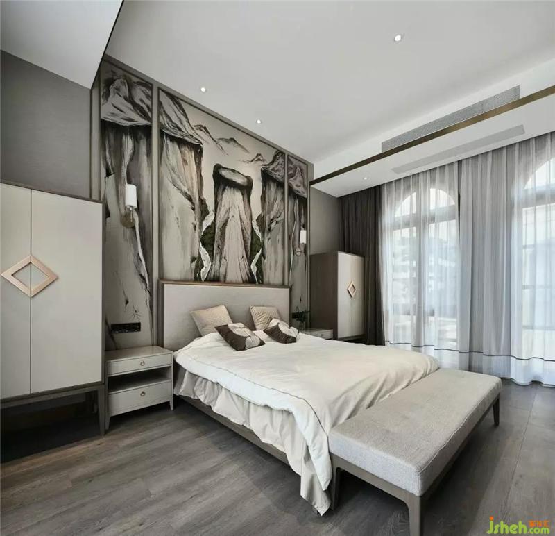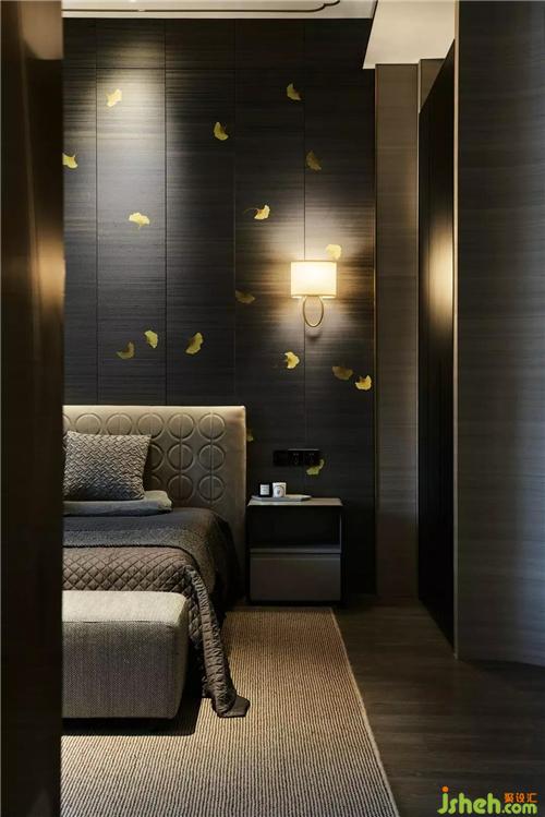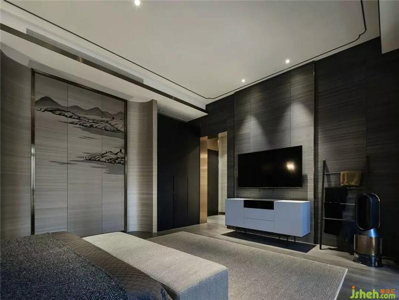 老人房以“高山流水”为主题,暖灰调的色彩舒适静谧,墙面不锈钢造型的延续,在传统的中式意境中注入现代时尚元素,整个色调沉稳雅趣,别墅装饰符合老年人的审美情趣。