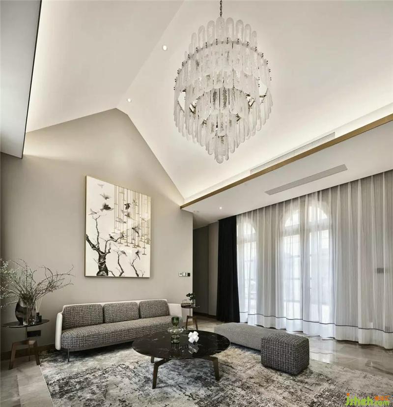 空间的视觉焦点——楼梯,具有大型装置艺术品的吊灯,呼应玻璃的护栏和金属扶手蜿蜒而上,以线条交织出充满转折的流畅美感,抬头便是一副令人赞叹的“艺术画作”。