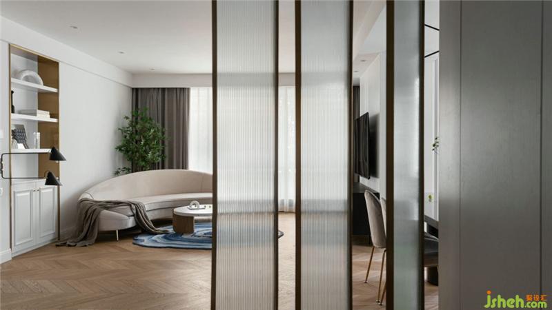 本一览无遗的客厅在分散式长虹玻璃的修饰下,朦胧而婉转,既丰富了视觉感受,宁波装修设计又增加玄关的仪式感。