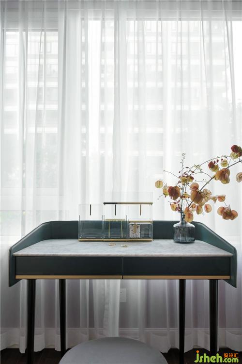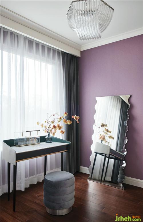 香芋紫的墙面充满了女性的柔美典雅,古典的梳妆台,景美的小花,点点滴滴都在叙述这个家女主人最美的姿态。