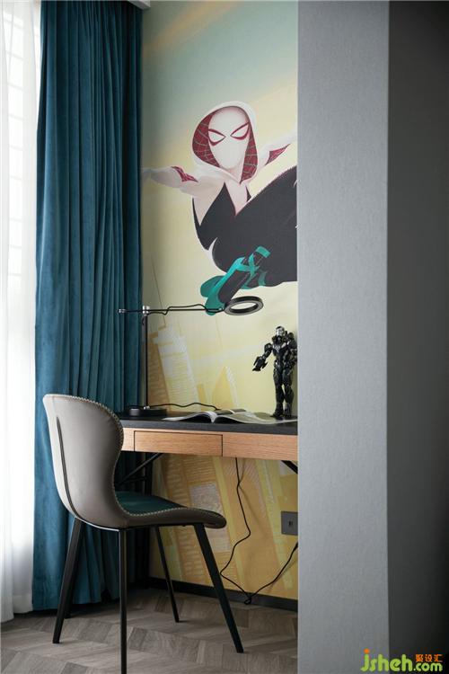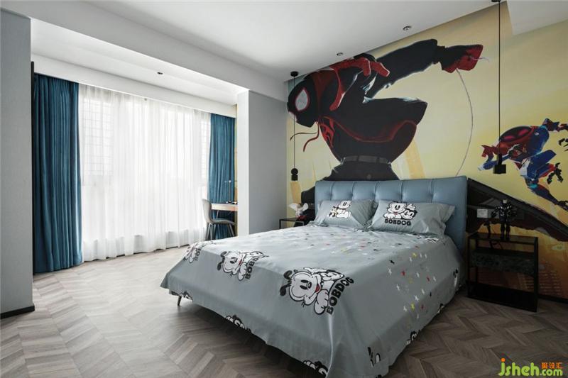 儿童房趣致的背景壁画符合孩童的审美与活力,生动的形象增加空间感。