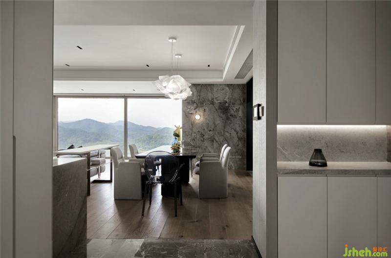步入玄关,映入眼帘的是一件艺术品,具有空间和艺术的平衡性、丰富性与现代审美的创新,杭州装修公司在灯光的映射下巧妙折显出整个空间的微妙变化。
