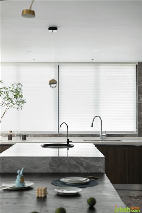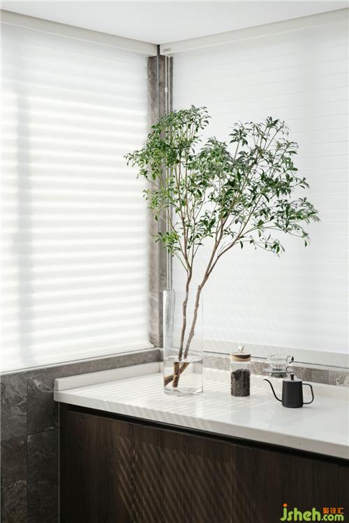 整个家开放明亮,西厨也舒服地笼罩在阳光之下,安静的午后,阳光滤过香格里拉帘,光影点缀房间,恬静唯美,手冲一杯醇香的咖啡,静享这一刻时光,生活除了杯盘刀叉的烟火气,更有无处不在的艺术气息,亦如我们会生活的业主小姐姐,总是满室花香,一身美好。