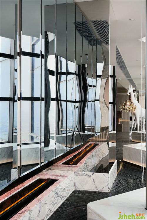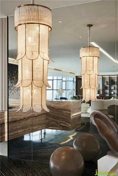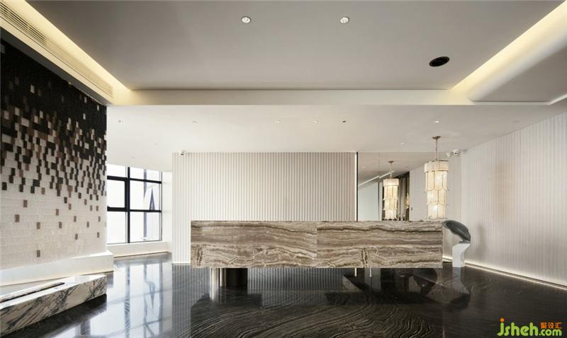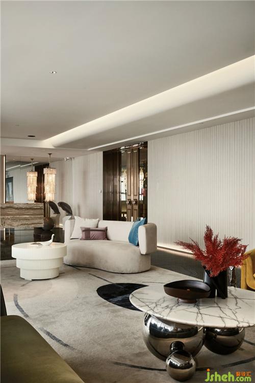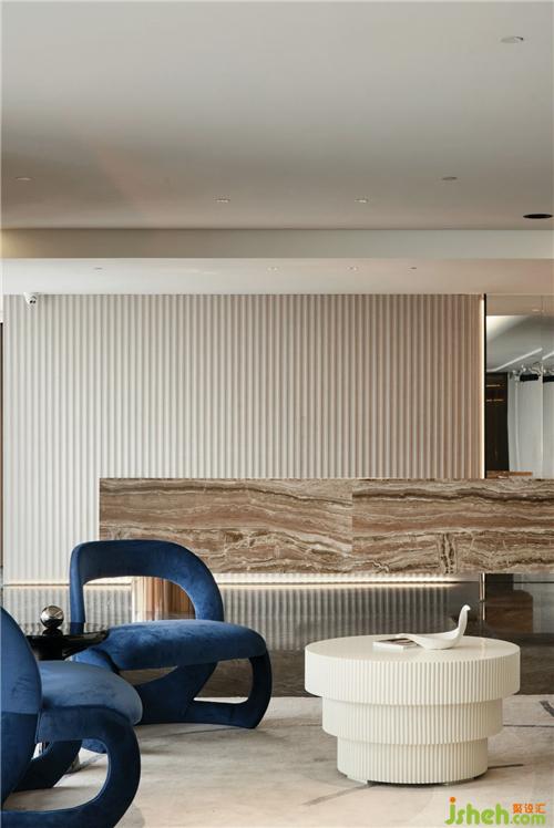 纯净的空间尽展典雅与洁净,设计师采用简洁干练的设计手法融合充满艺术感的软饰拉开空间的帷幕,充满秩序的墙面与交错的曲线灰玻构成整体氛围,更像是一个艺术的圣殿。
