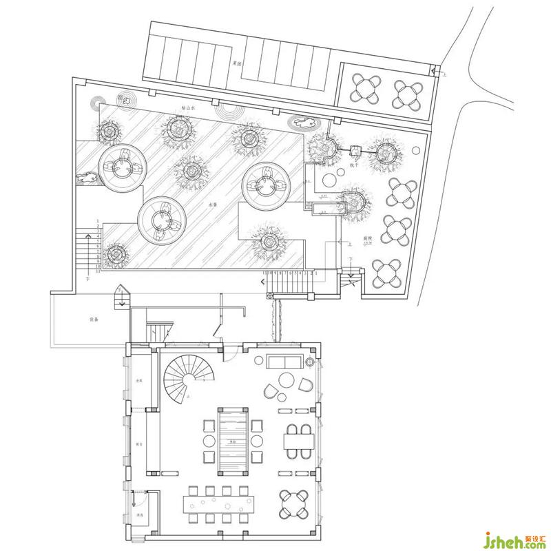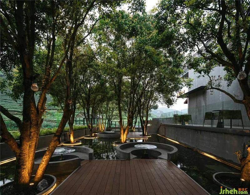 走进院落,杭州会所设计下沉式的卡座恍如水中碗莲,阳光透过树枝的缝隙洒下来,光影斑驳,坐下来沉浸于周围茶香清幽之中,一板木,一缕光,足以让心境沉淀,让灵魂驻足。
