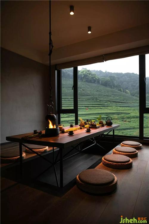 作为私人聚会和接待雅集的双重属性,满足空间的功能需求是不可须臾或缺的。会议室和茶室享受最好的采光面;大面玻璃墙围构的通透氛围,使人的视线可以径直穿透室外的茶园之景,延伸至飘渺的云雾处。