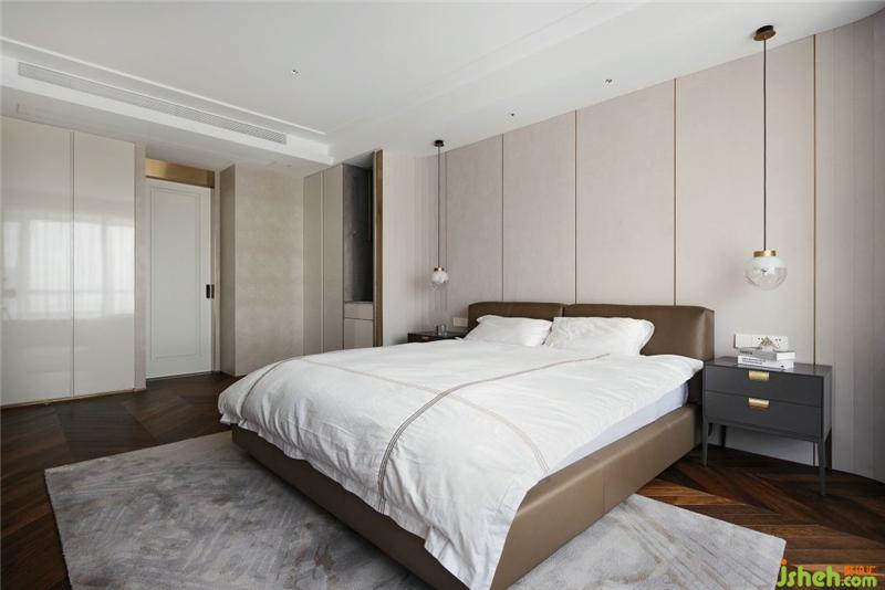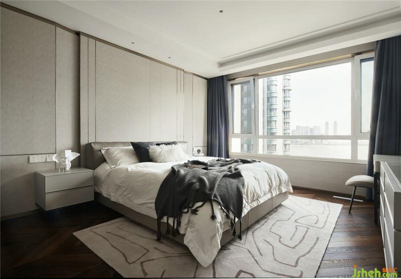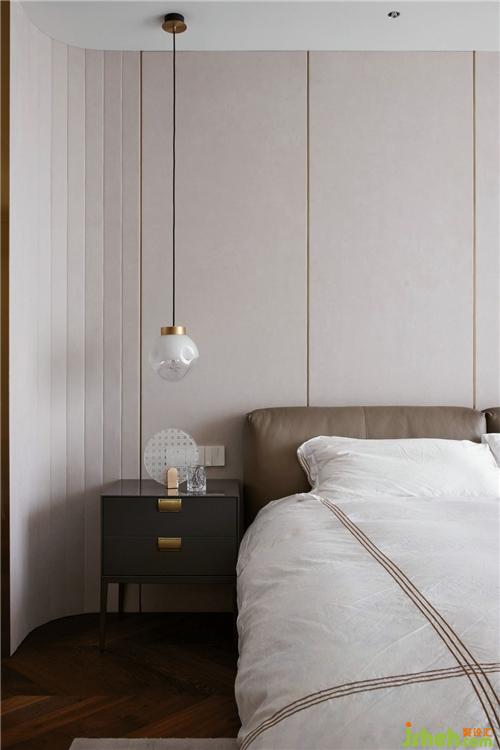 主卧作为和客厅一样拥有同样视野、同样尺度的观景台,每块岩板与奢石都经过设计师严格甄选,充分利用材质的天然纹理,与各种进口软装的搭配融合,整体氛围简洁、流畅、奢华杭州别墅装饰。