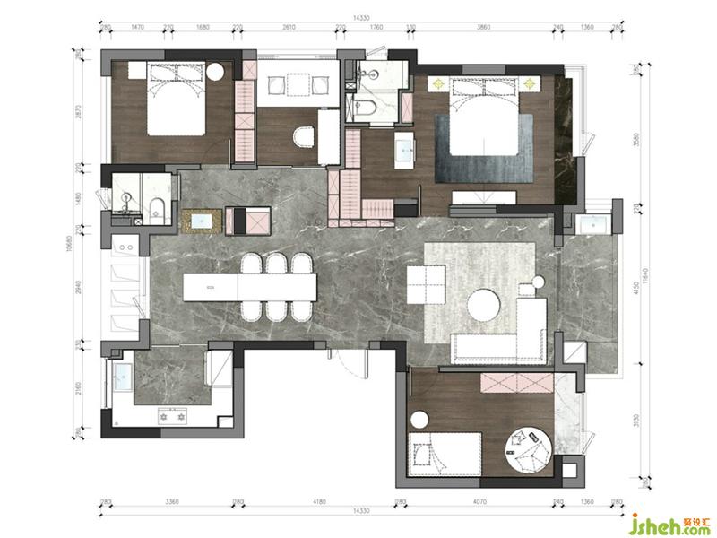 关于设计:和客户的渊源来自于玫瑰园的客户,客户欣赏我们的设计并与设计师一见如故;在进一步交谈中,诉说了一些自己的生活习惯和对实木格栅的喜爱,其余的便全权交由设计师负责,充分地给足了设计师自由发挥的空间。