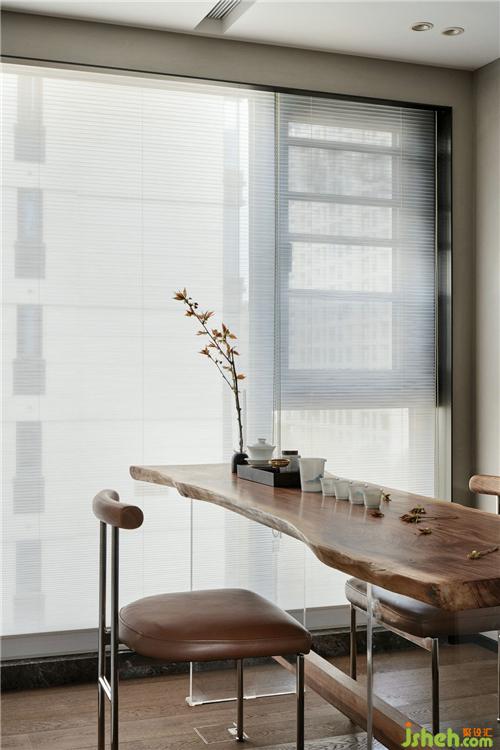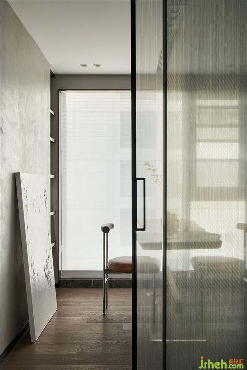 书房与餐厅之间的门采用的是半透的拉丝玻璃,增加了两者之间的联系,力设计也增加了空间的延伸效果。